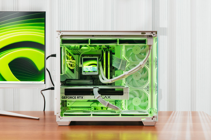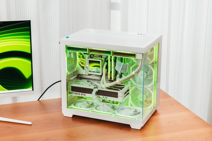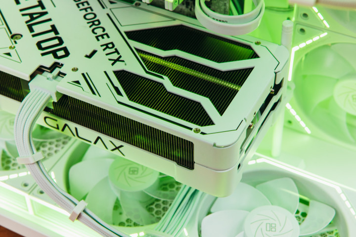 这次搭配了白绿RGB配色,皮衣刀客老黄最喜欢的颜色,绿色数值特意调成草绿,也算是应景50系显卡的发布。