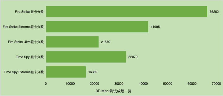 传统的Fire Strike以及Time Spy测试,Fire Strike Ultra显卡得分21670,Fire Strike Extreme显卡得分41995,Fire Strike得分66202;Time Spy Extreme得分16389,Time Spy得分32879。
