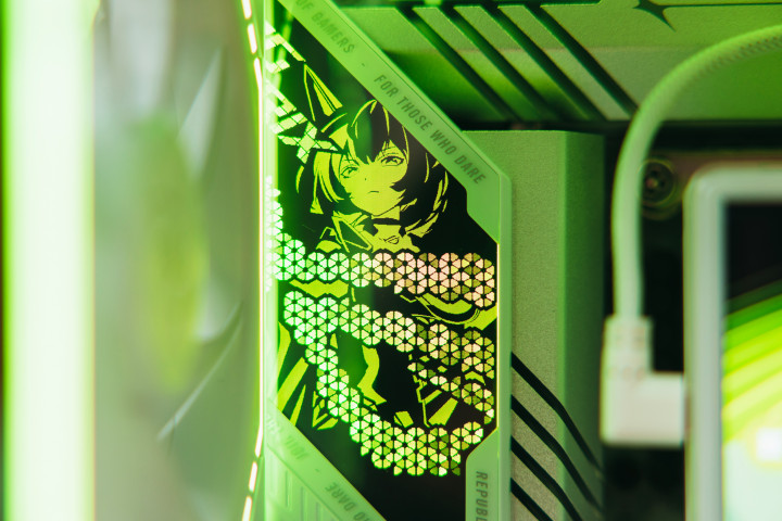 Polymo灯效点亮后为雪武战姬和ROG 信仰之眼。