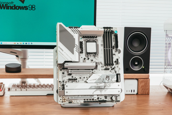 整体来说,这一代Z890吹雪S外观变化的有:散热片上的Polymo灯效、全白PCB、M.2快拆散热装甲及表面图案。