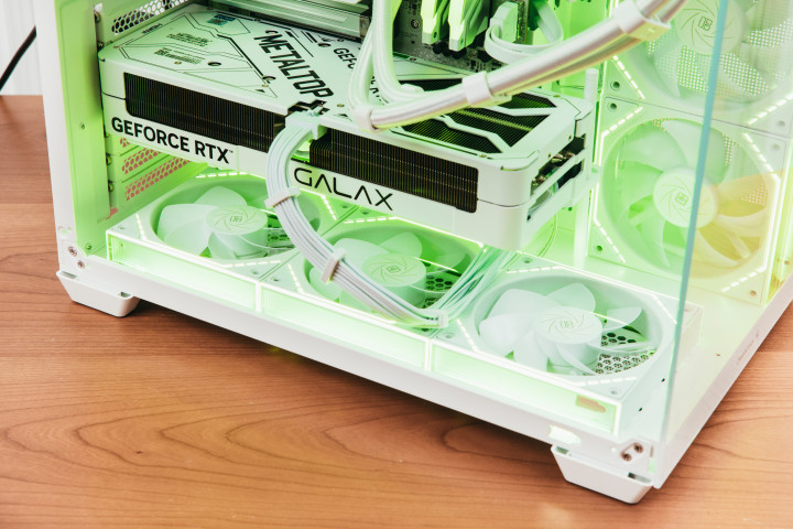 正面角度,风扇这次搭配了侧面具备无限棱镜效果的利民ARGB风扇。