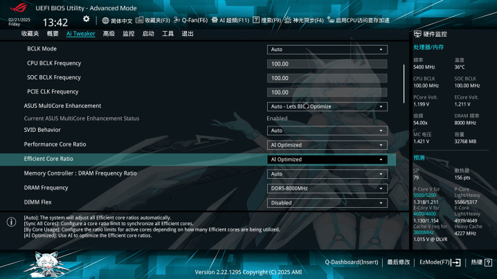 之前几次装机没试过这套金士顿Renegade叛逆者 DDR5 8000的超频潜力,这次可以试试了,Z890吹雪S的超频能力不错,而这套内存也是海力士的A-die颗粒,其实之前尝试过M-die,都可以小超。