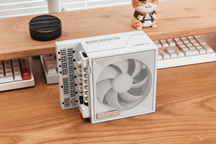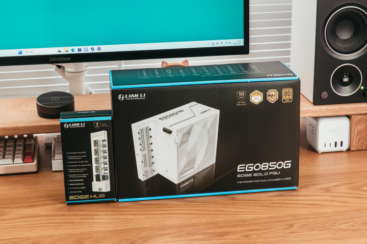 联力金牌全模,也是非常有特色的ATX3.1规格电源,它的最大特点就是L型外形设计,供电接口做了一个90度转换,具备磁吸滤网,可以外挂USB集线器,除了搭配自家系列机箱使用,其他机箱使用也很方便。