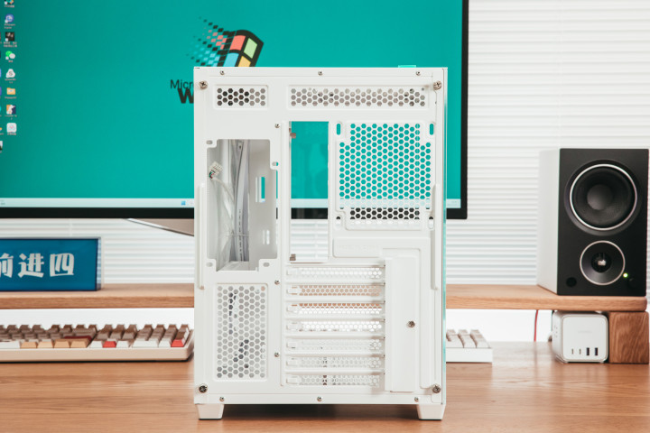 左右分仓,左侧为常规电源仓、理线仓以及硬盘仓,PCI槽位7个,可以满足高阶显卡需求。