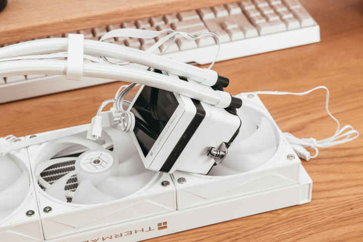 散热是来自利民的新品, GRAND VISION 360 ARGB WHITE 苍穹视界,本质上水冷以换水冷头和风扇为主,所以利民推出新品的速率确实挺夸张的,给了消费者更多的选择。